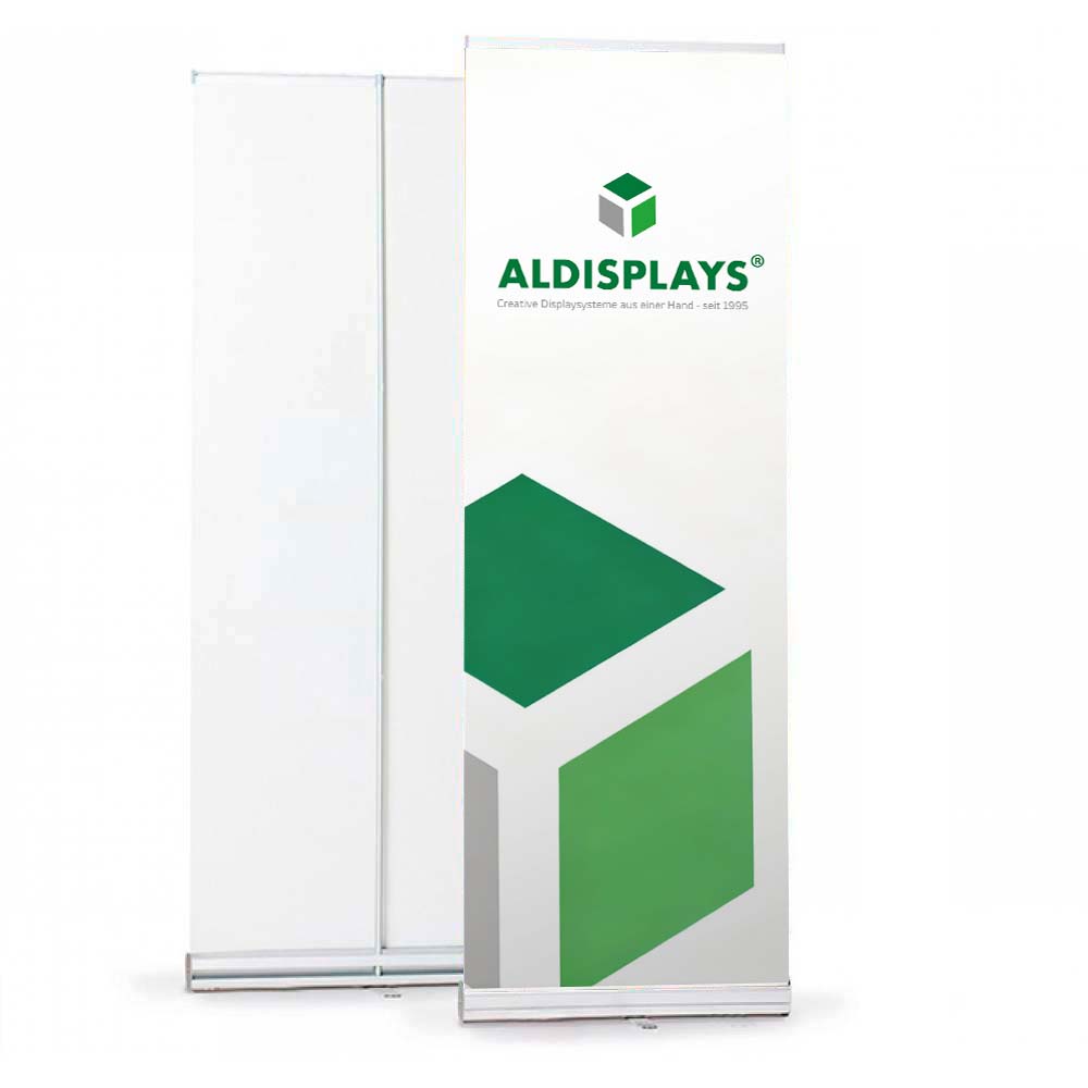 Bannerdisplay RollUp - BASIC - Sichtformat: 600 x 2.000mm - bestehend aus System, Aluminiumstange, - gepolsterter Transporttasche mit Tragegurt, - Digitaldruckbanner 600 x 2.160 mm (Poly) - Druck gem. gel. Druckdaten - einzeln verpackt