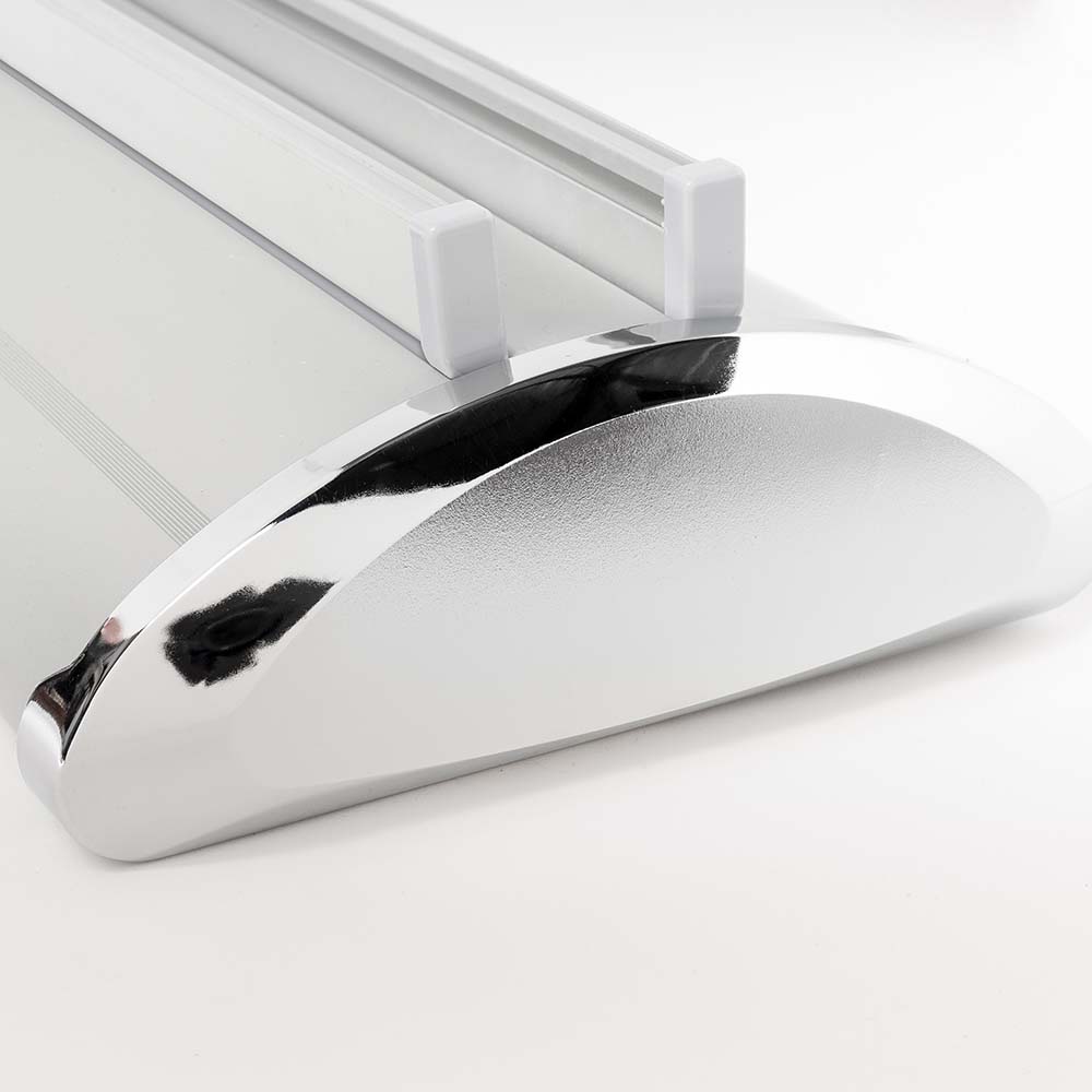 Bannerdisplay RollUp - Design 100 Double - Sichtformat: 1.000 x 2.000 mm - Verchromte Seiten und Standfuß, Teleskopstange, - gepolsterte Transporttasche mit Tragegurt, - 2 Digitaldrucke 1000 x 2160 mm (Greyback PVC-frei B1) - Druck gem. gel. Druckdaten - einzeln verpackt