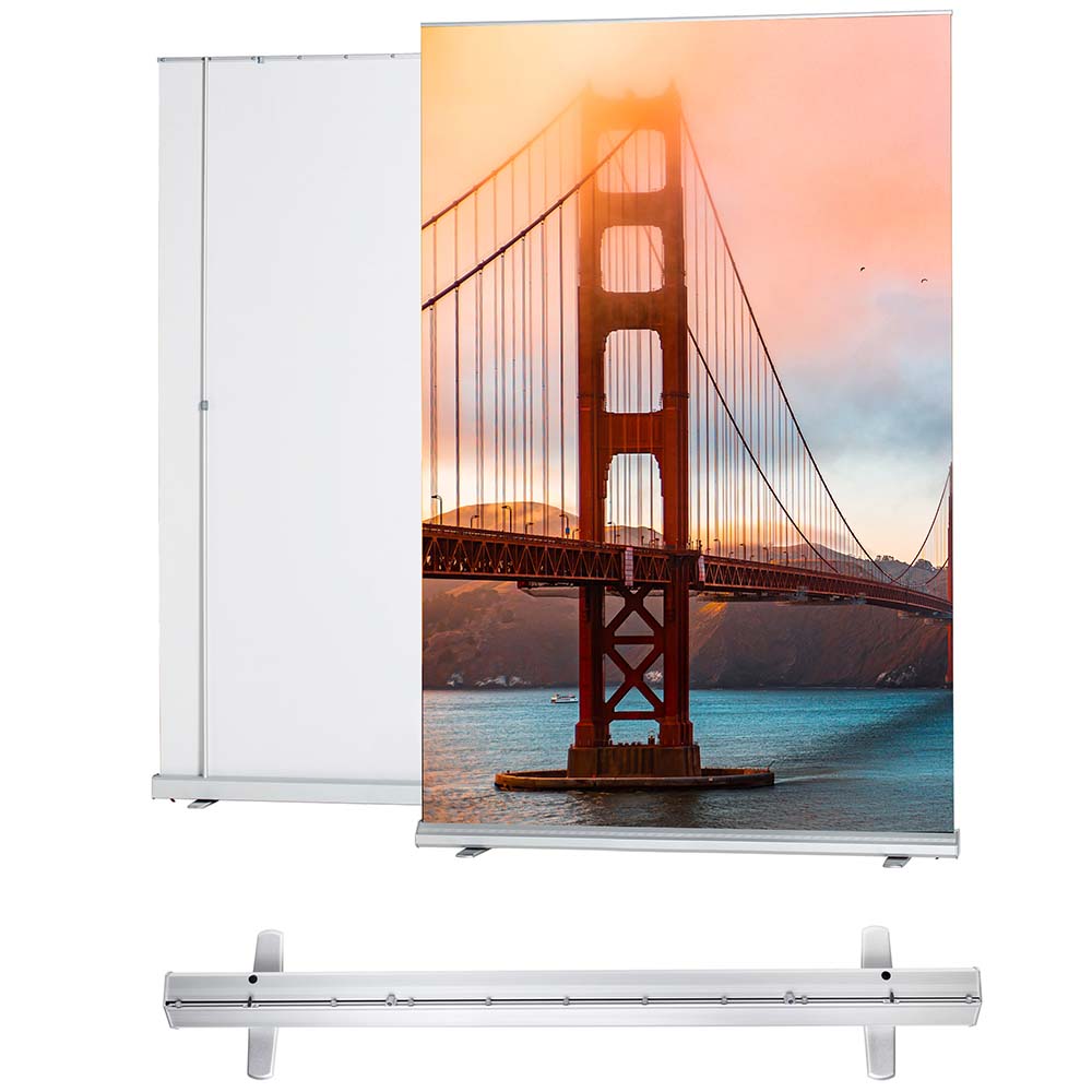 Unser Rollup Maximus bietet eine unschlagbare Kombination aus Stabilität, einfacher Handhabung und Flexibilität. Die verstärkten Seitenkappen und Füße heben unser Produkt von der Konkurrenz ab. Der Roll-Up Maximus löst Ihre Präsentationsprobleme effizienter als andere Produkte auf dem Markt.