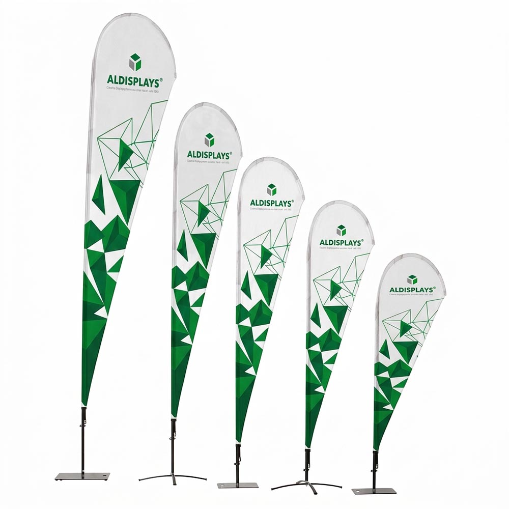 Das hängt vom Einsatzort ab: Kleine Modelle eignen sich für Indoor-Events, große Beachflags (bis zu 5 m Höhe) erzielen maximale Fernwirkung im Außenbereich.