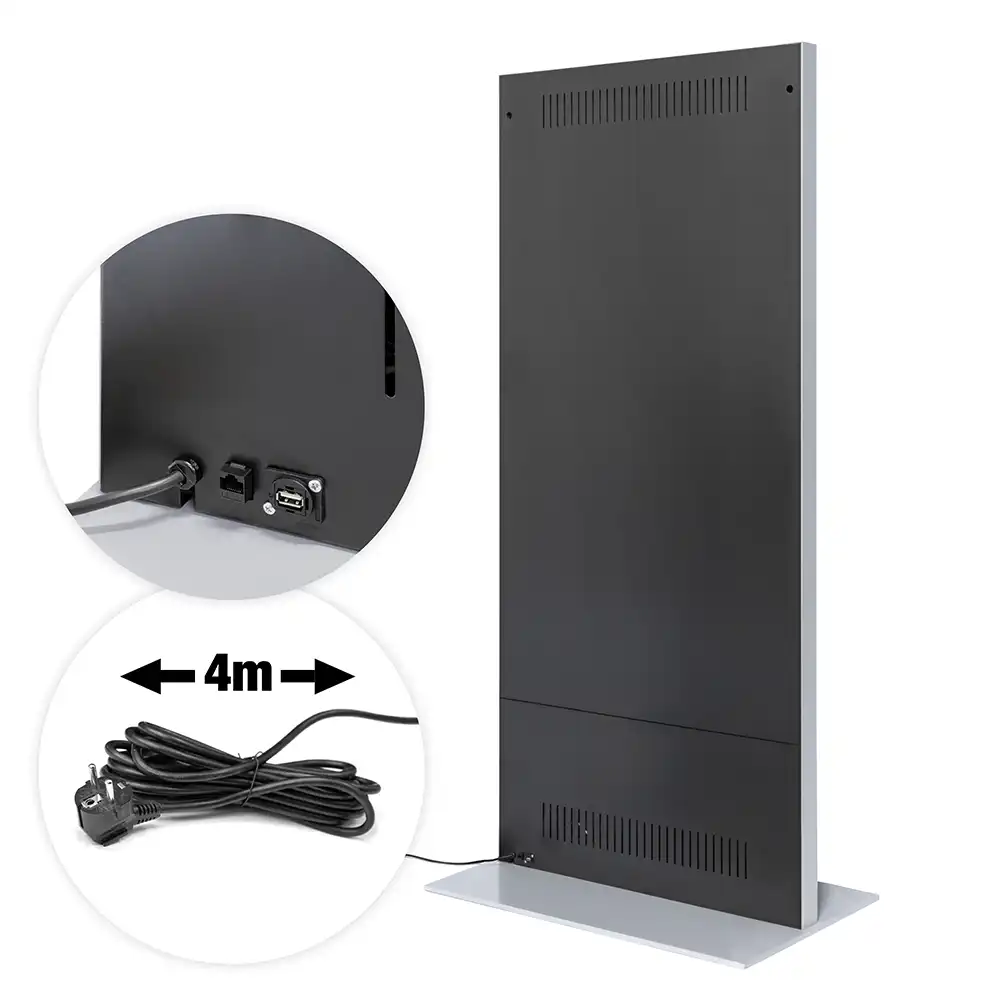 Digital Signage Digitale Info-Stele SLIM - für den Inneneinsatz - Größe: 65 Zoll - 4K UHD - Farbe: Silber + Schwarz - Bautiefe ca. 75 mm - einseitig - incl. Samsung-LED Display für den 24/7-Einsatz - (24 Stunden an 7 Tagen in der Woche)