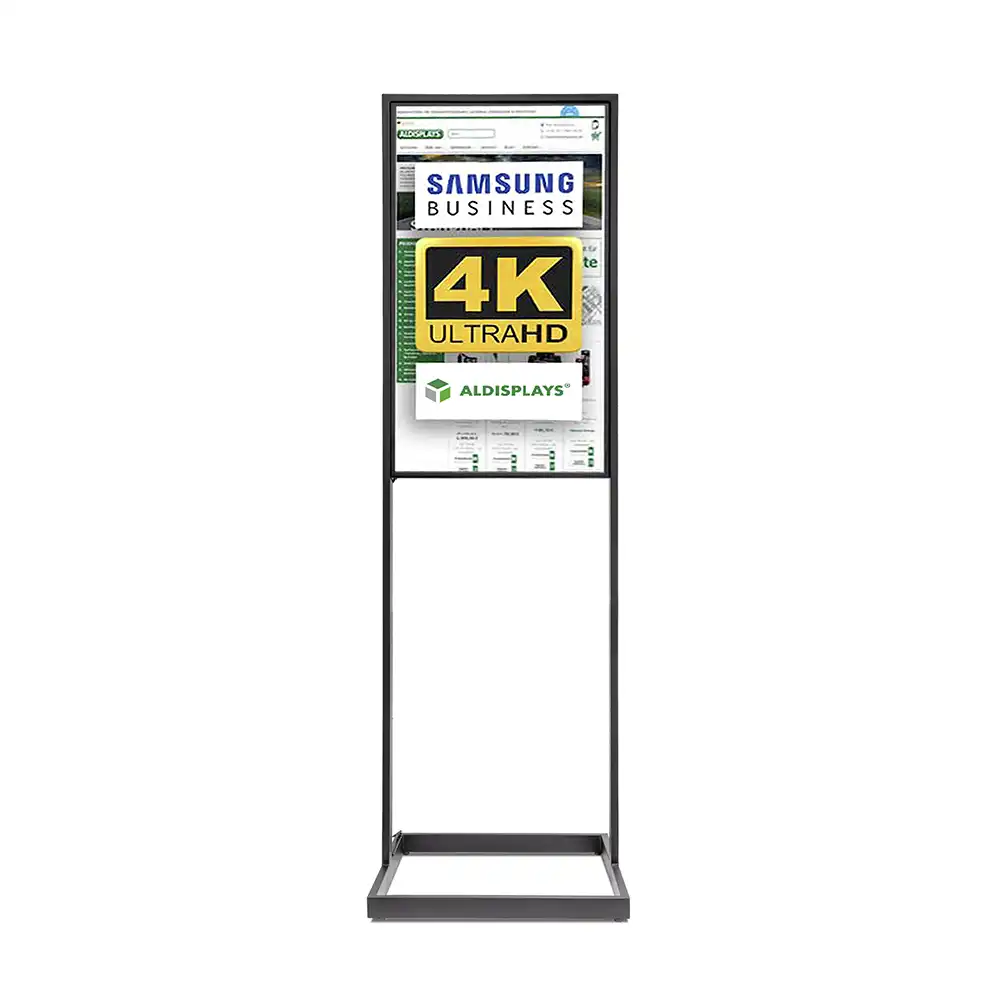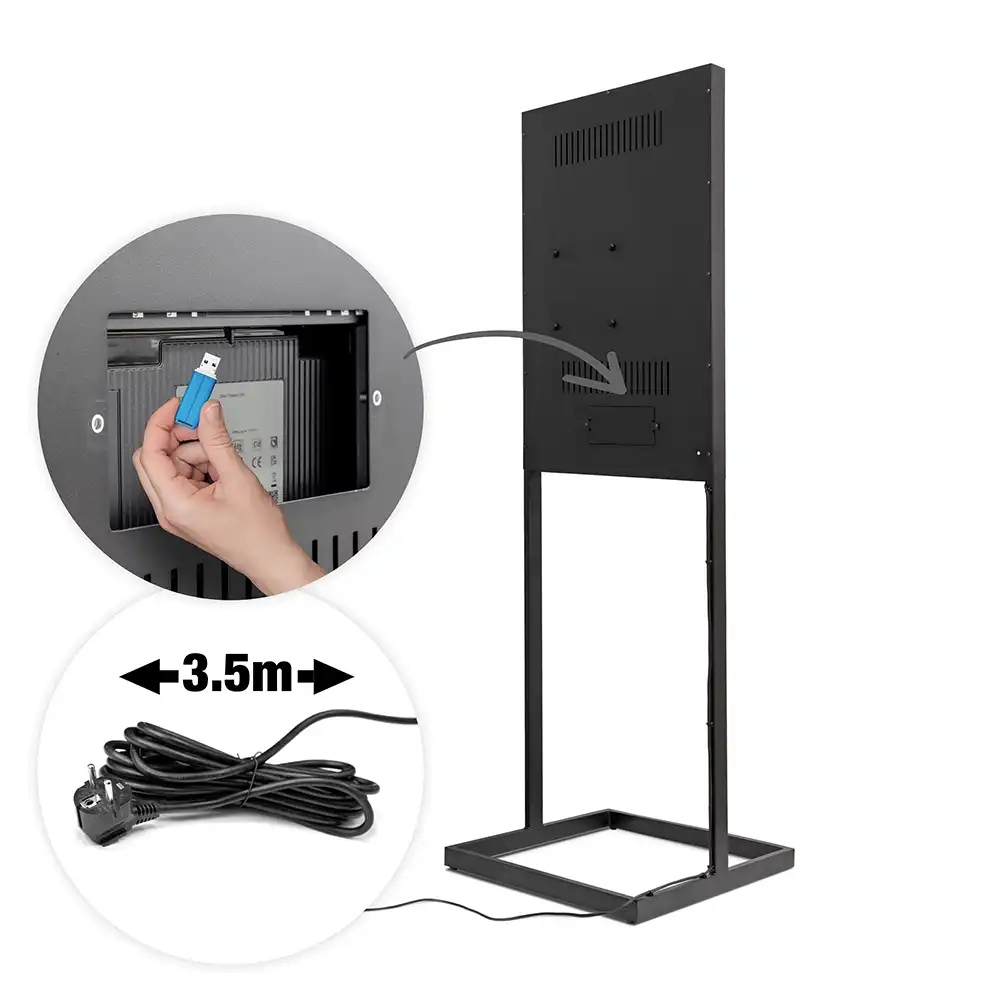 Digitale Info-Stele Trendline AIR - für den Inneneinsatz - Größe: 43 Zoll - 4K UHD - Farbe: schwarz, Display mit dezentem Rahmen - Format (BxHxT): 603 x 1.900 x 600 mm - incl. Samsung-LED Display für den 24/7-Einsatz - (24 Stunden an 7 Tagen in der Woche)