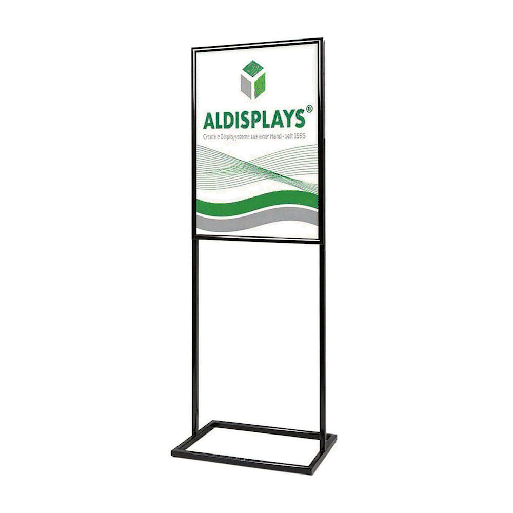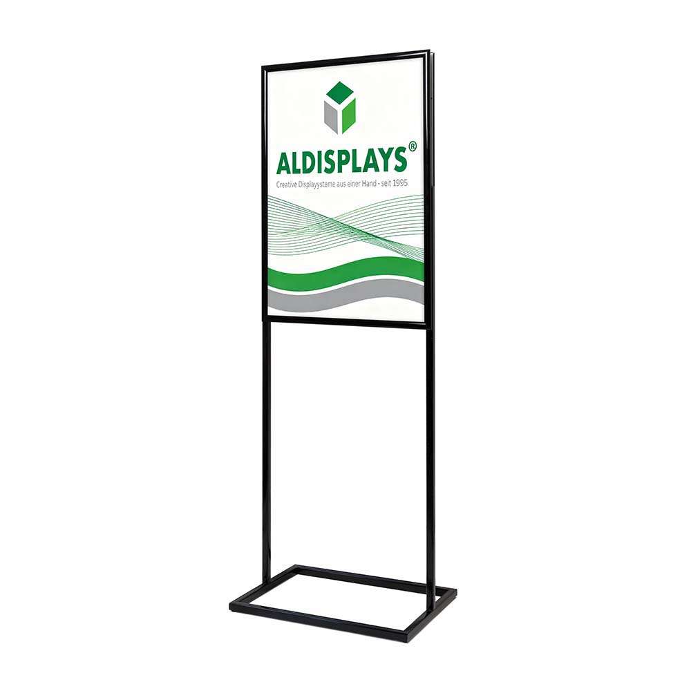 Infoständer QUATTRO DIN A1 schwarz - Gesamtformat: 630 (B) x 1.792 (H) x 536 (T) cm - Posterformat: DIN A1 (vorder- u. rückseitig) - Elegante Struktur mit 25 mm Klapprahmen, - Fuß, Stützen und Klapprahmen aus Aluminium - Farbe: schwarz, Posterschutzfolie: Antireflex