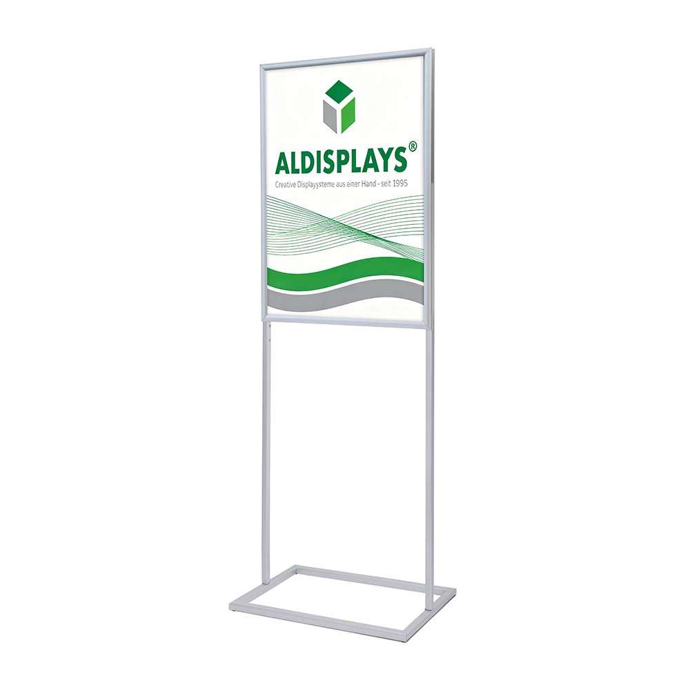 Infoständer QUATTRO DIN A1 silber - Gesamtformat: 630 (B) x 1.792 (H) x 536 (T) cm - Posterformat: DIN A1 (vorder- u. rückseitig) - Elegante Struktur mit 25 mm Klapprahmen, - Fuß, Stützen und Klapprahmen aus Aluminium - Farbe: silber, Posterschutzfolie: Antireflex