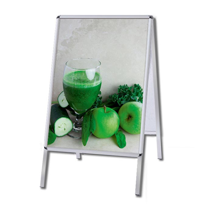Kundenstopper INDOOR Rondo - Einlegeformat: DIN A2 (420x594 mm) - Profil: 25mm Rondo - Oberprofile: silber-eloxiert (EV1) - Rückwand aus schlagfestem Kunststoff - Posterschutzfolie: Antireflex