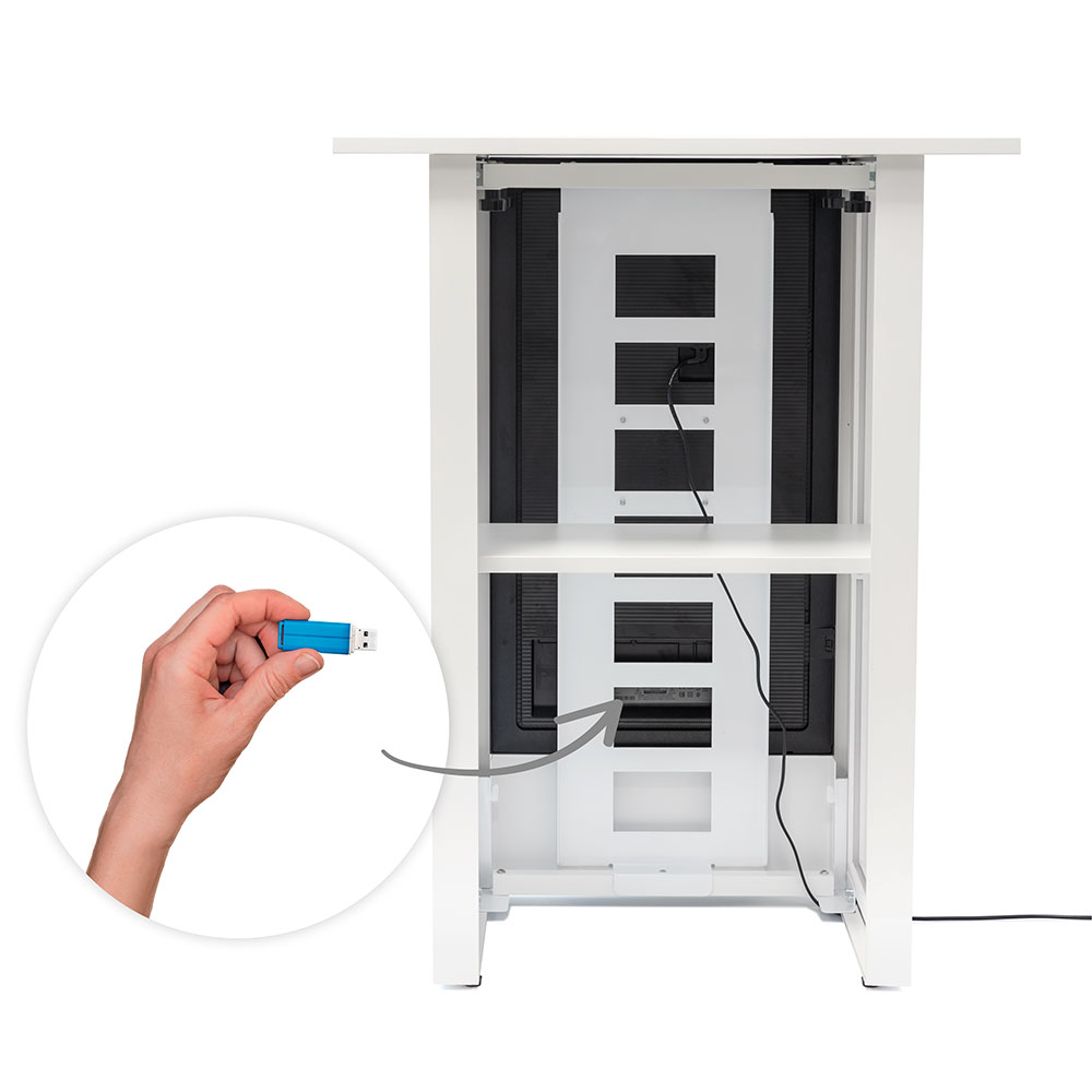 Digitale Promotiontheke 32" 4K UHD, weiss, einseitig - mit SAMSUNG 24/7 Digital Signage Display inklusive Mediaplayer ...