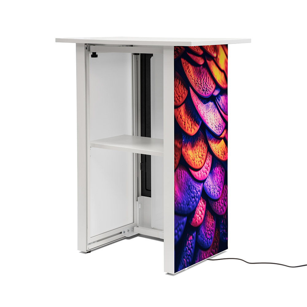 Digital Signage Promotiontheke Futuro 32" weiss - für den Inneneinsatz - Größe: 32 Zoll - 4K UHD Farbe: weiss, mobil und zerlegbar - Format (BxHxT): 720 x 928 x 445 mm - incl. Samsung-LED Display für den 24/7-Einsatz - (24 Stunden an 7 Tagen in der Woche)