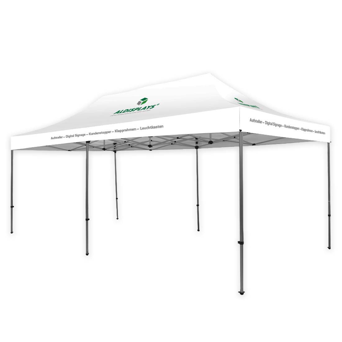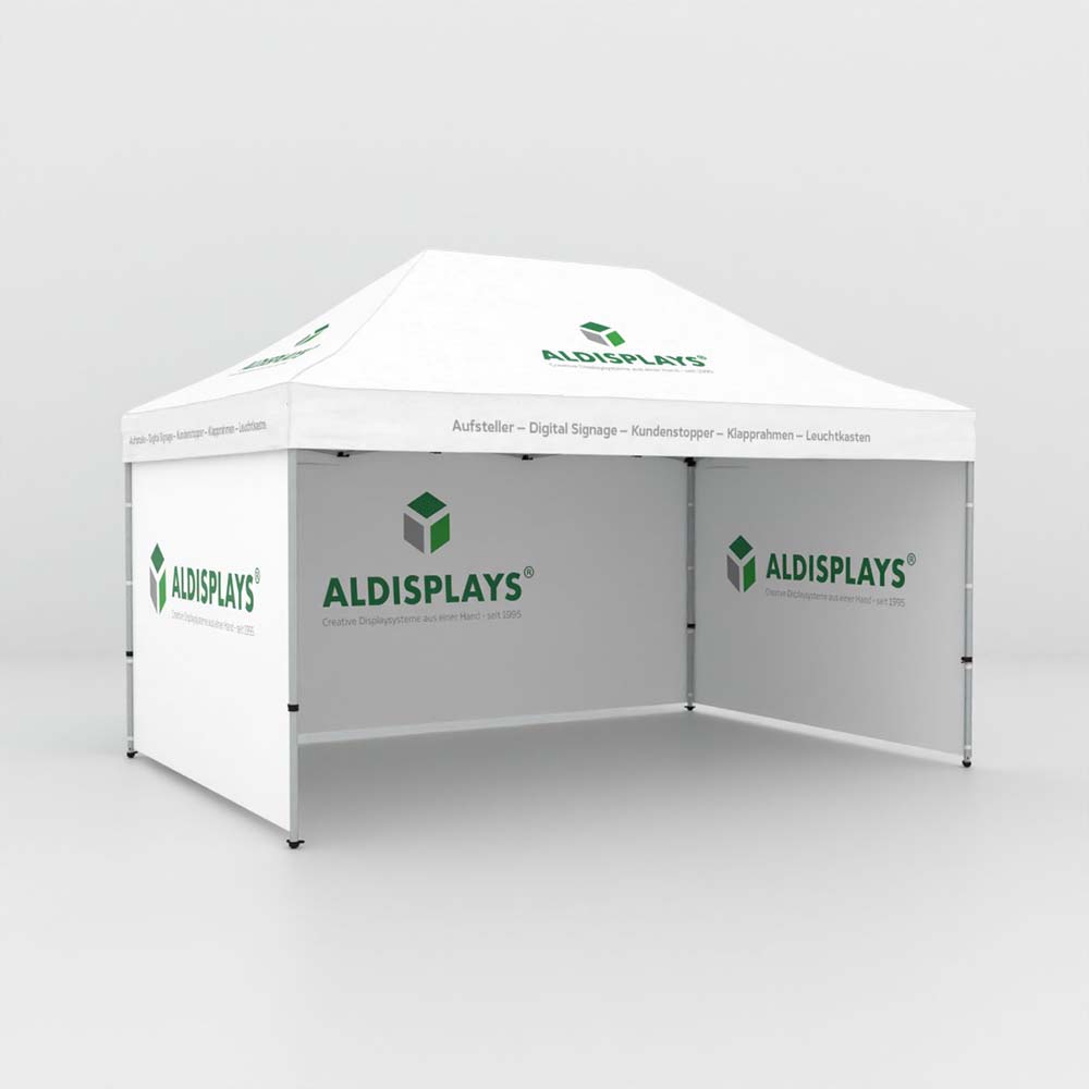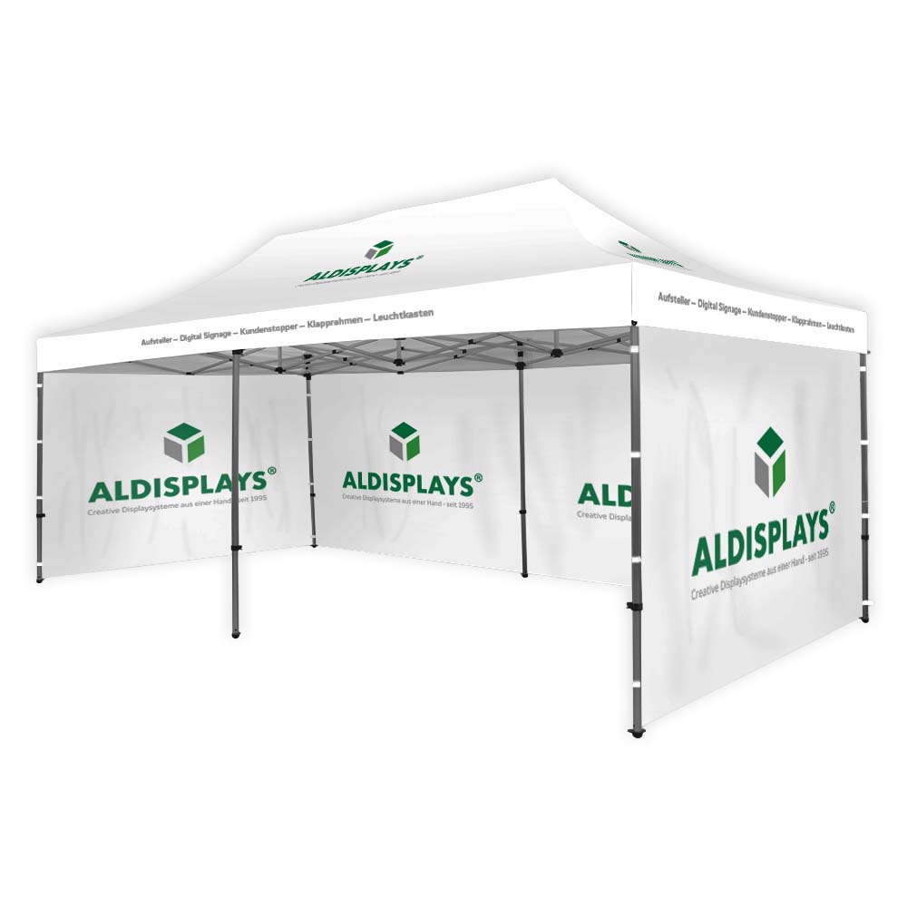 Promotionzelt 6x3m mit bedrucktem Dach - Bestehend aus: 6x3m Aluminium Gestell, Transport- - tasche mit Rollen, individuell bedrucktes Dach (B1) - Gewicht: 32,5 kg; Format Tasche: 43x164x30 cm - Druck erfolgt auf der Zelt-Aussenseite - Druck gemäß gelierten Druckdaten