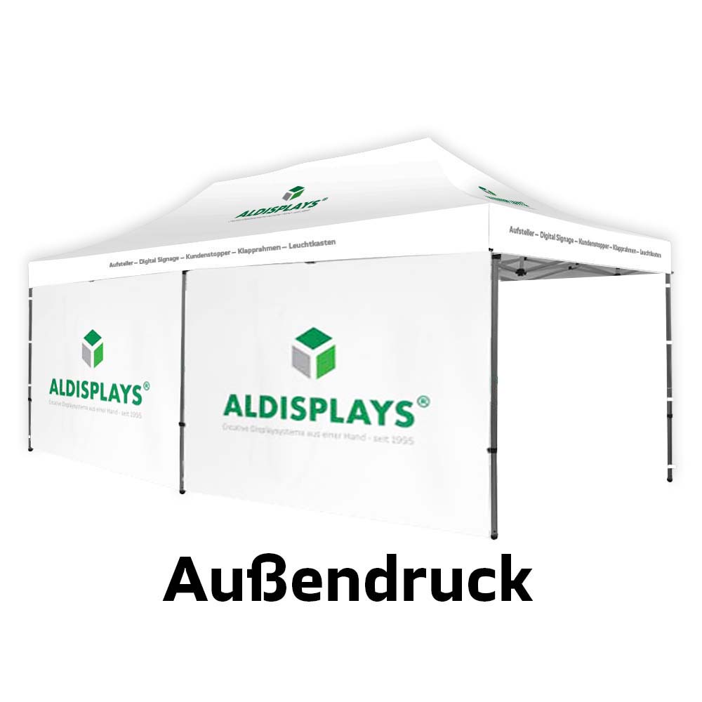 Promotionzelt Seitenwand 6m Außendruck - Bedruckte Seitenwand (B1 mit versiegelten Nähten) - mit seitlichen Reissverschlüssen und Klettstreifen, - 4/0 Motivdruck auf der Außenseite - Druck gemäß gelieferten Druckdaten
