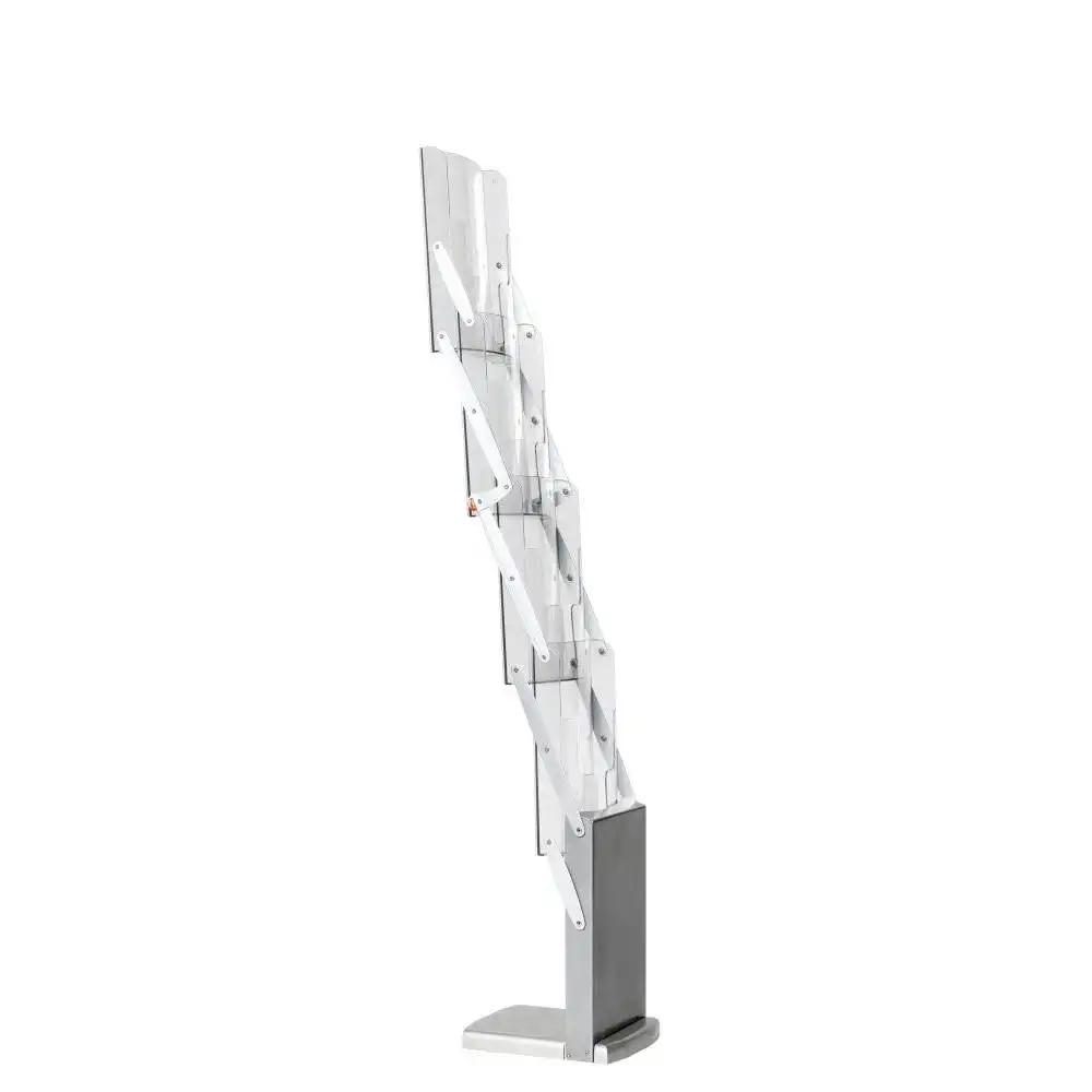 Prospektständer faltbar PREMIUM - Zick-Zack-Form - Schmale Ausführung - mit 4 Prospektablagen - aus Acryl für DIN A4 (Hochformat)